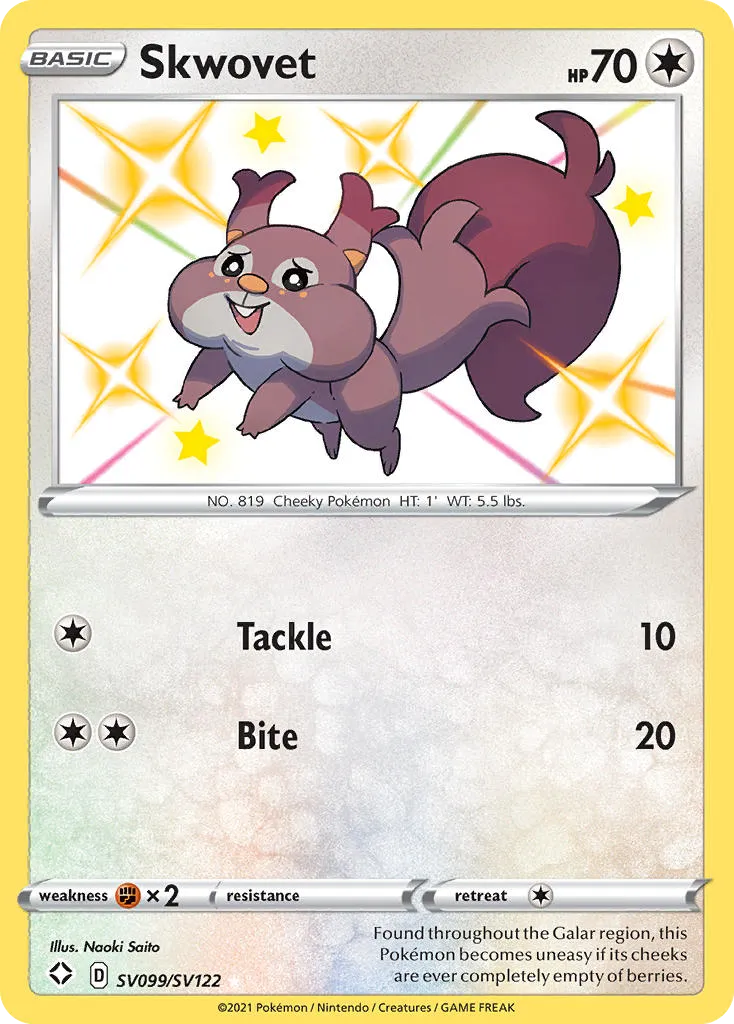 Found throughout the Galar region, this Pokémon becomes uneasy if its cheeks are ever completely empty of berries.